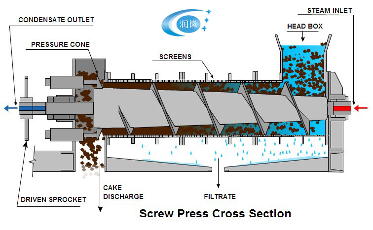 用液下泵将原粪水提升至固液分离机内,挤压蛟龙将物料逐渐推向机体前方,不断提高前缘的压力,迫使物料中的水分在边压带滤的作用下挤出网筛。当压力大到一定程度时,截留在滤网内的滤渣就将卸料口顶开挤出卸料口,达到挤压出料的目的。固液分离机的工作是连续的,经螺旋挤压过滤分离出的废水可直接派送至沉淀池等。