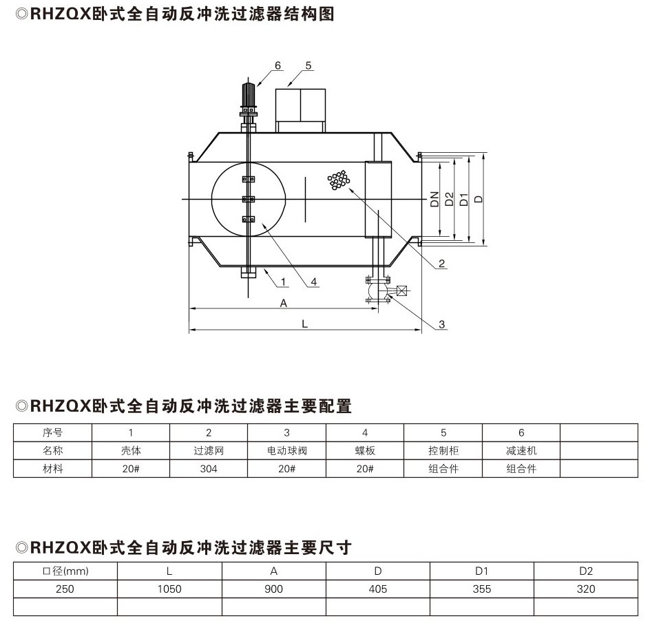 RHZQX卧式全自动反冲洗过滤器工作原理主要是由优质碳钢筒体、特殊结构的不锈钢楔形滤网、电动执行机构及排污装置所组成。当过滤器工作时,电机执行机构引导蝶阀处于开启状态,水流由入口进入过滤器,经过滤网过滤到出口。当过滤器需要排污时,关闭蝶阀,打开电动排污阀,水流经滤网前半段过滤,部分水流由出口流入系统,剩余水流由滤网后半段外侧流入内侧,经排污口排出,起到反向自动冲洗滤网的作用。这样整个冲洗过程系统可正常运行,无需?;?