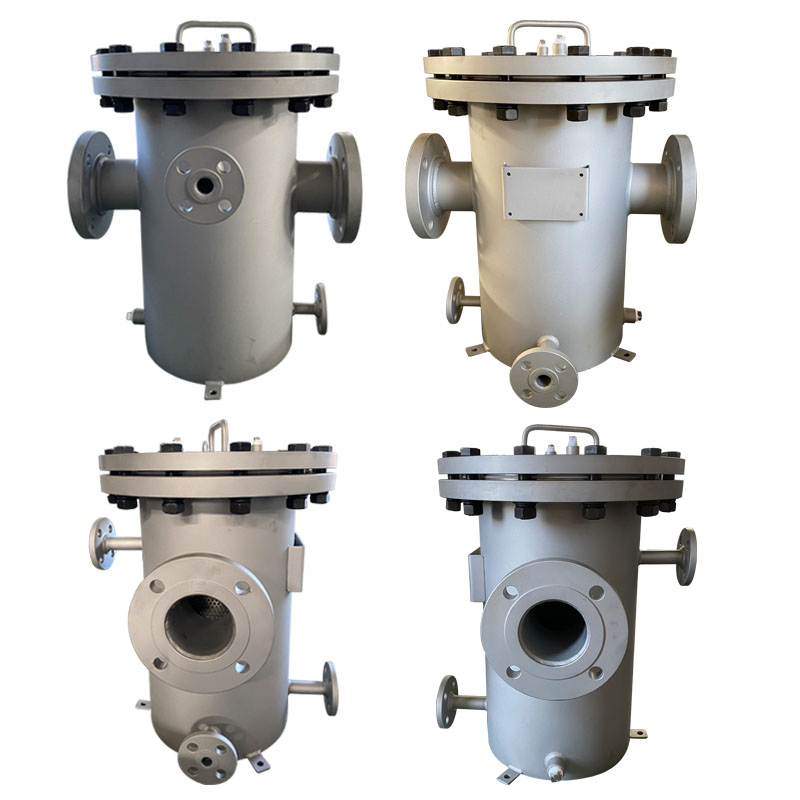 The basket filter is mainly composed of nozzle, head, filter basket, flange, flange cover and fastener. When the liquid enters the basket through the main pipe, the solid impurity particles are blocked in the basket, and the clean fluid is discharged through the filter basket and through the filter outlet. When cleaning is needed, unscrew the bottom plug of the head, drain the fluid, remove the flange cover, and reload after cleaning, so it is very convenient to use and maintain.