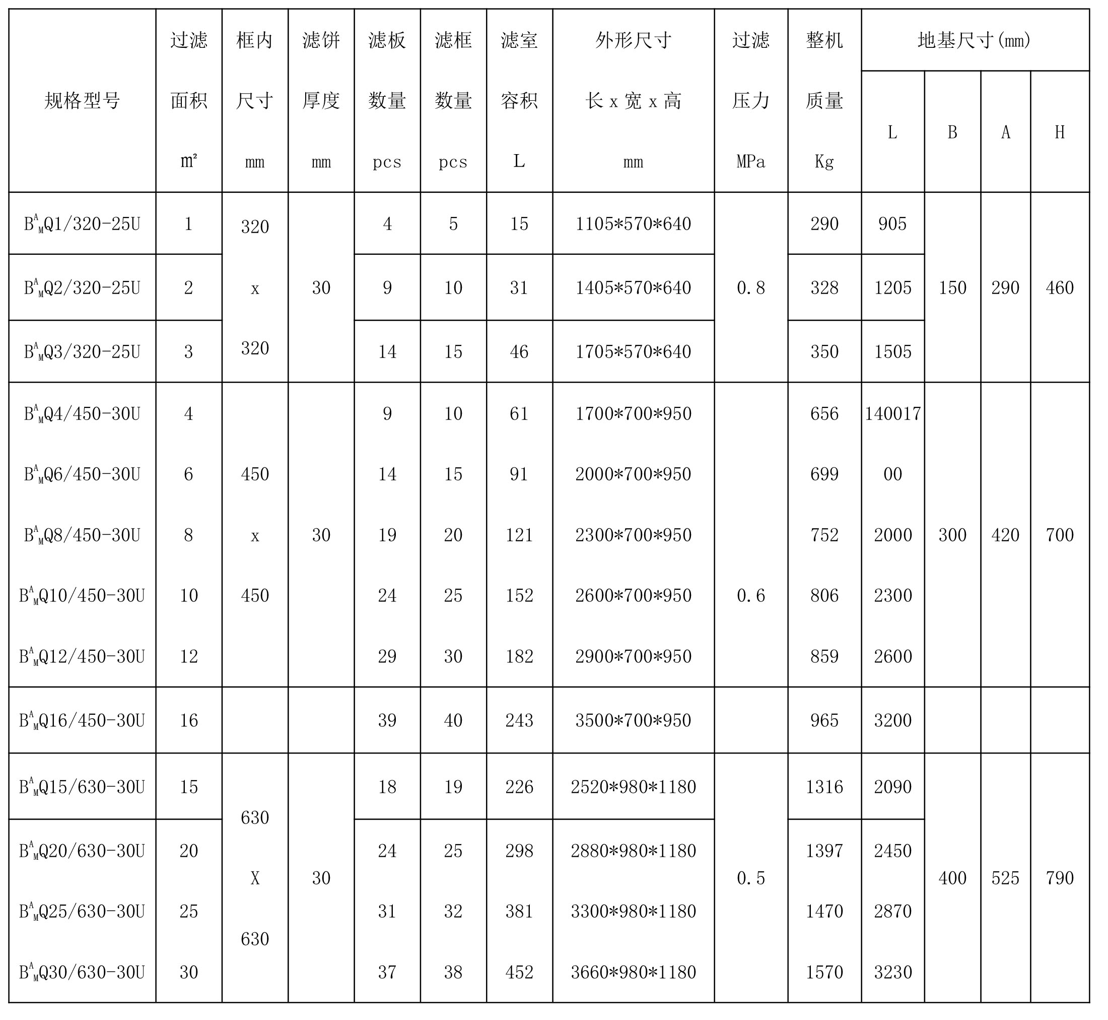 手动千斤顶压紧增强聚丙烯板框式压滤机技术参数