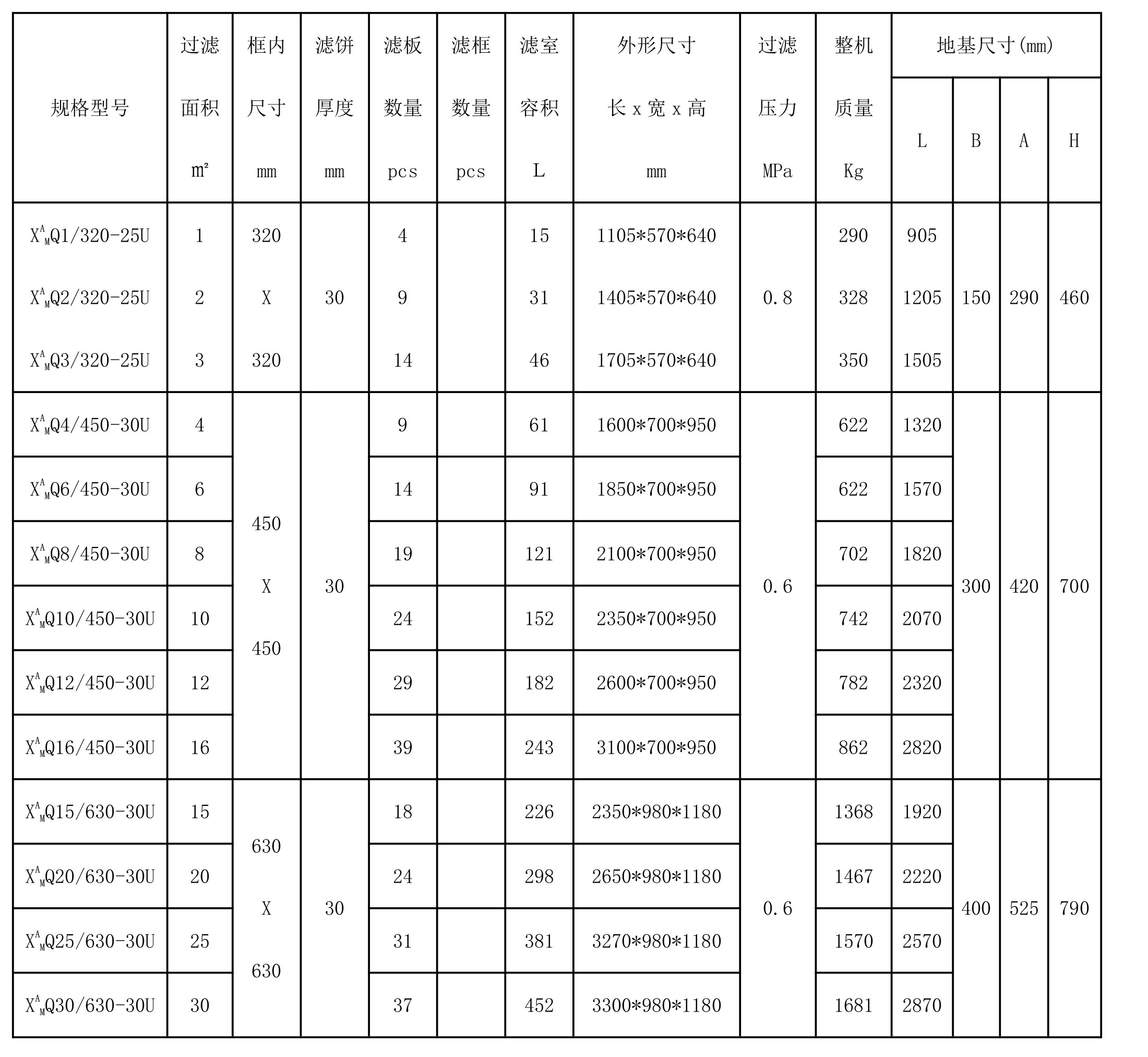 手动千斤顶压紧增强聚丙烯厢式压滤机技术参数