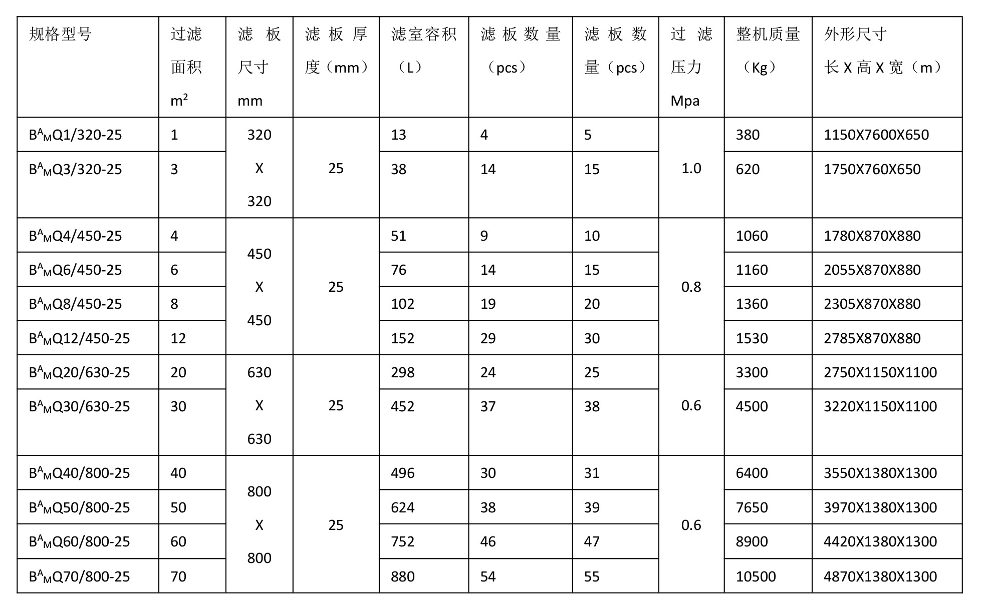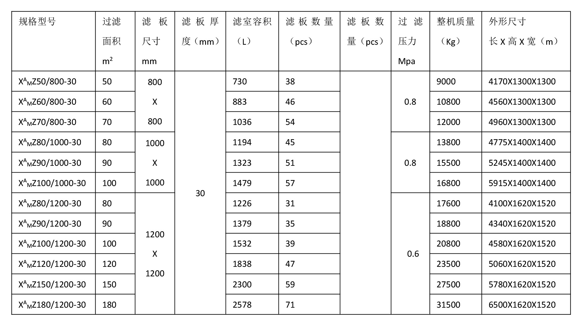 800-1200型全自动铸铁板厢式压滤机技术参数