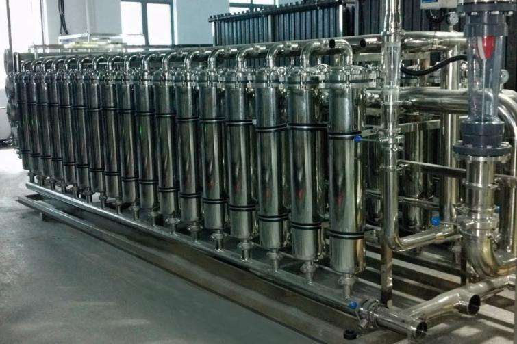 在超滤过程中,水溶液在压力推动下,流经膜表面,小于膜孔的溶剂(水)及小分子溶质透水膜,成为净化液(滤清液),比膜孔大的溶质及溶质集体被拦截,随水流排出,成为浓缩液。超滤过程为动态过滤,分离是在流动状态下完成的。溶质仅在膜表面有限沉积,超滤速率衰减到一定程度而趋于平衡,且通过清洗可以恢复。